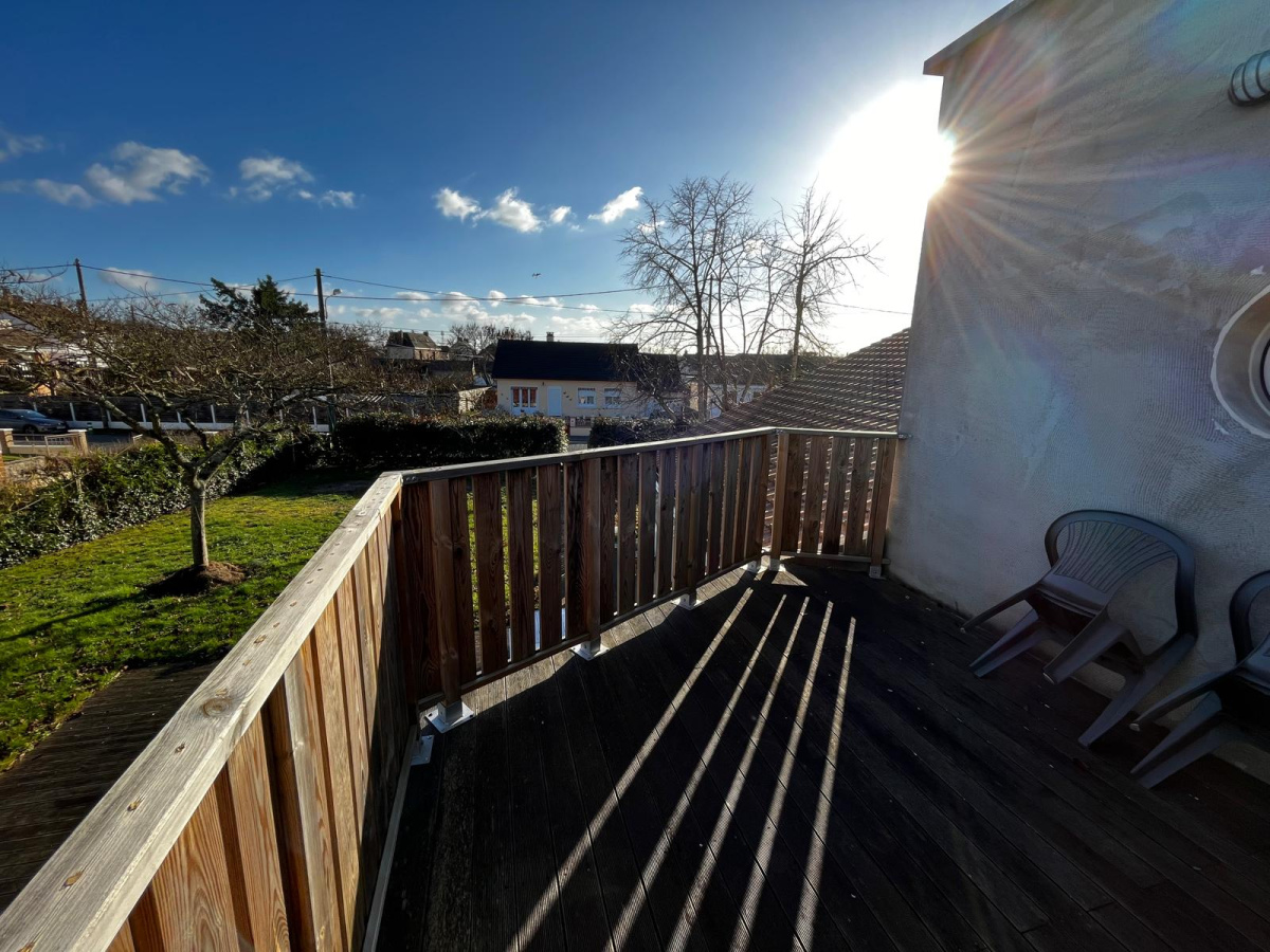 L’extérieur, directement accessible depuis le séjour, possède une belle terrasse en bois, ainsi qu’un jardin parfaitement clos.